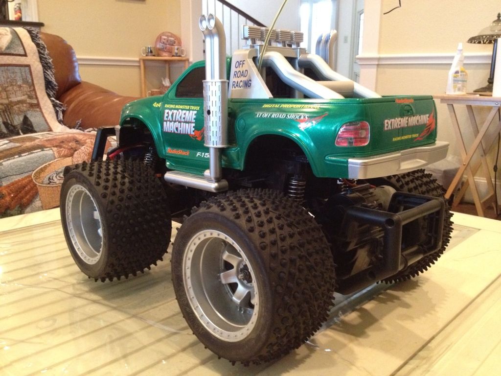 Back in the day radio shack made the Extreme Machine and it was the first of the giant 4WD trucks with dual 540 motors and later came the identical Nikko Hercules. They had tons of power once they got rolling but when you would try to climb a big hill or cross a mud bog the power just wasn't there. I remember trying soo many obstacles off-road that it had plenty of potential to conquer but just not enough power. Running a 7.2v 1500mah battery gave it about 5 minutes of run time which was horrible. Enough of that bull *censored*.....