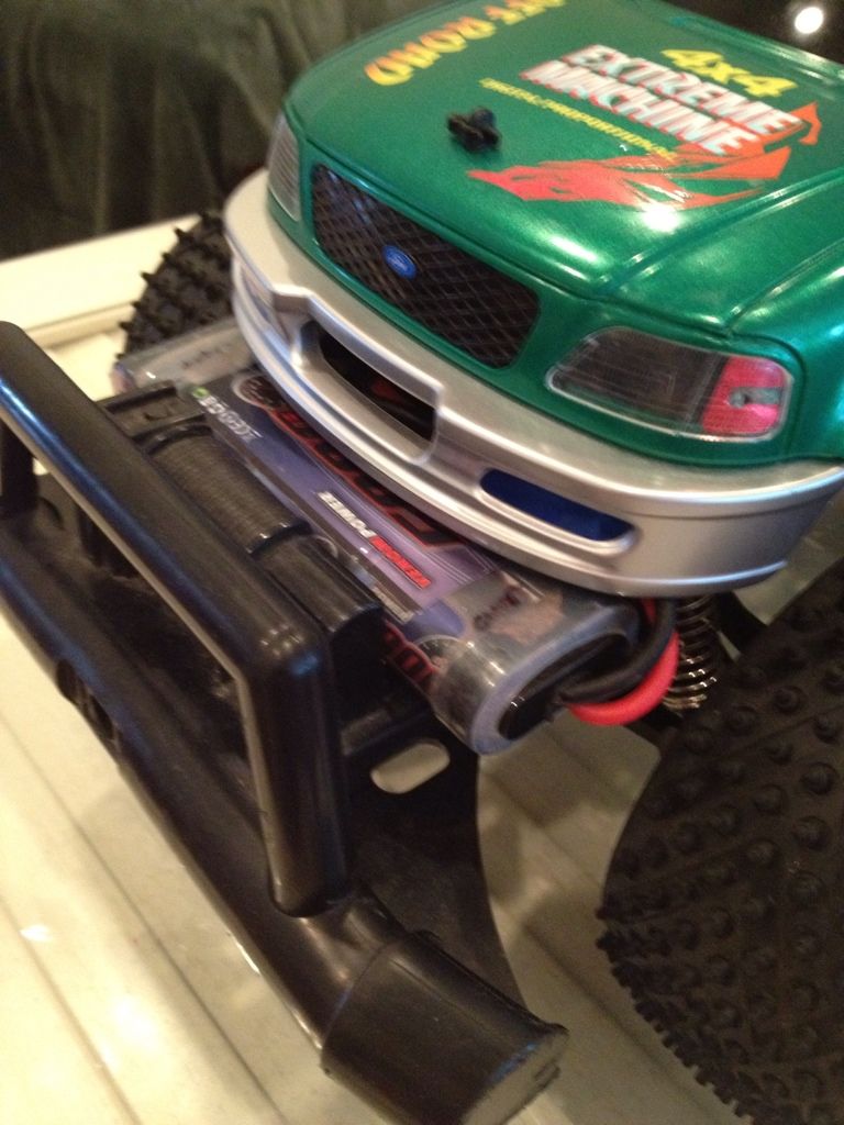 I just converted this extreme machine to a hobby car and im running full waterproof traxxas electronics with the vxl speed control, the highest torque servo and a 5400mah 11.1v that fits perfectly one the front bumper. It is a bit faster and i have yet to recharge the battery on the same run. Im anxious to go do some water crossings and mud bogs now.