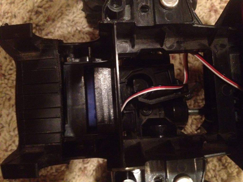 Motor: 550 Titan motor custom fit onto the factory motor mount and running a 19t pinion instead of the stock 8t. Took hours to align and fit correct so that the pinion meshes perfect with the first gear.
