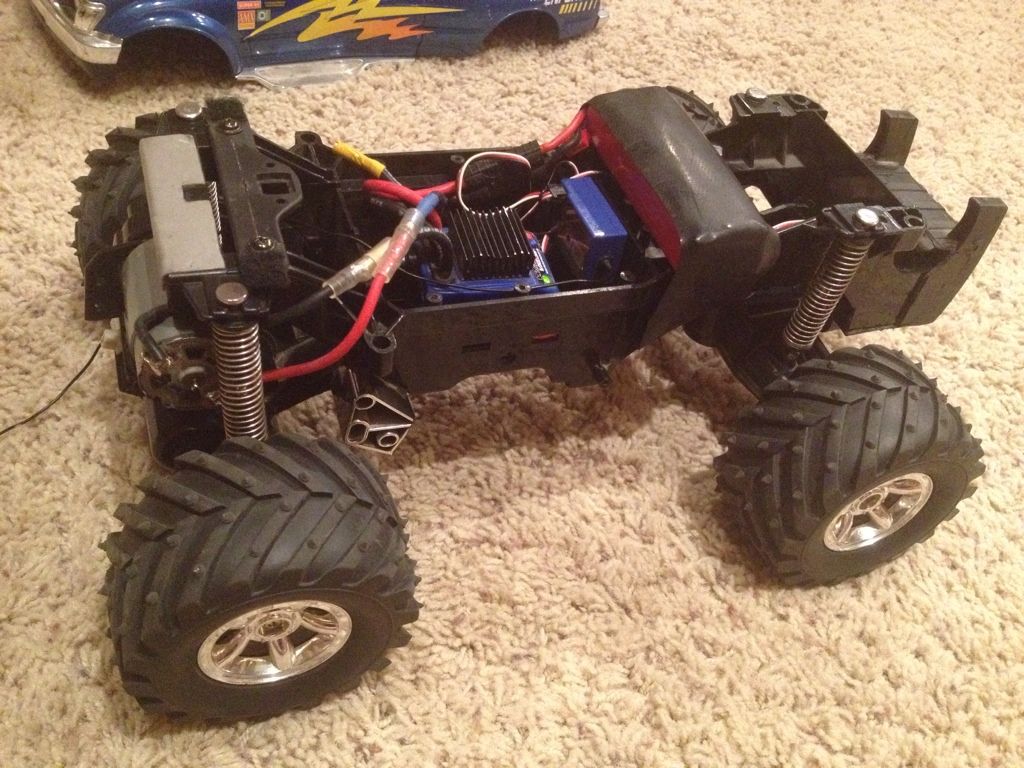 I converted this radio shack enforcer to a hobby truck and it has to be the most difficult conversion ive ever done. But it was done right and functions amazing. It is ready to hit the mud, rain, snow, sand and rocks with front/rear lockers, full water proof electronics and all the bottom end torque it will ever need. Top speed is around 20mph in hi gear using an 11.1v lipo. This is absolutely night and day a huge improvement in every aspect. It has approximately 10x the stock power.