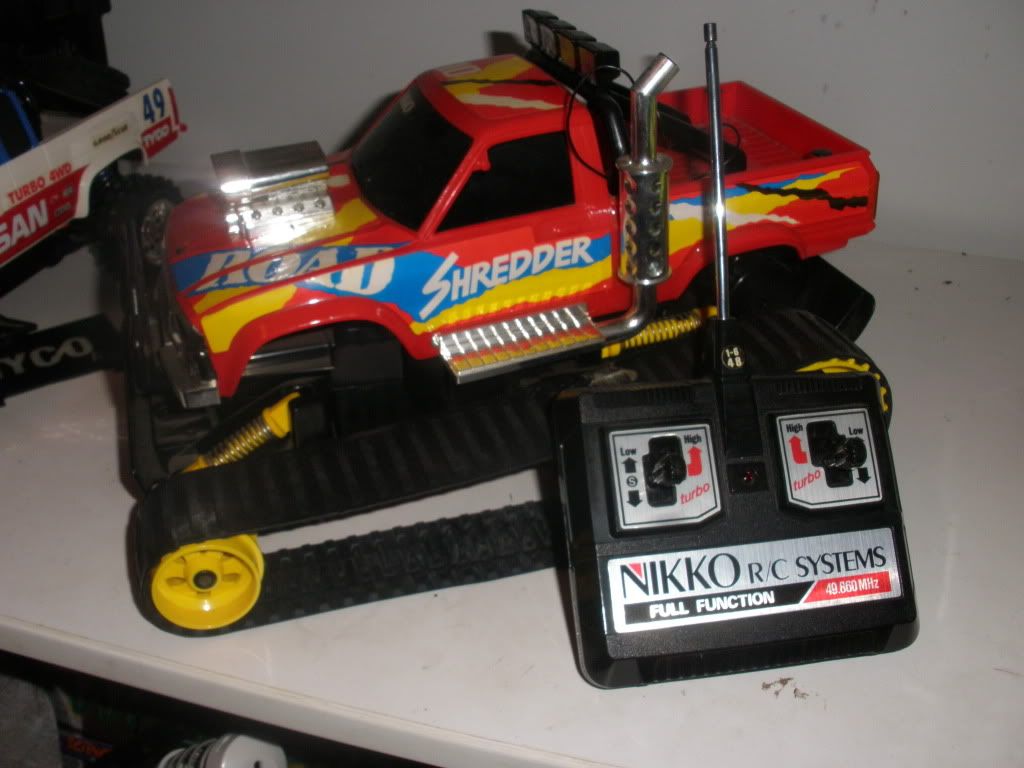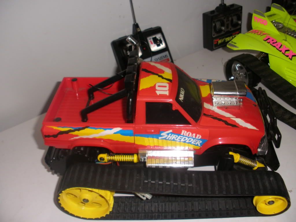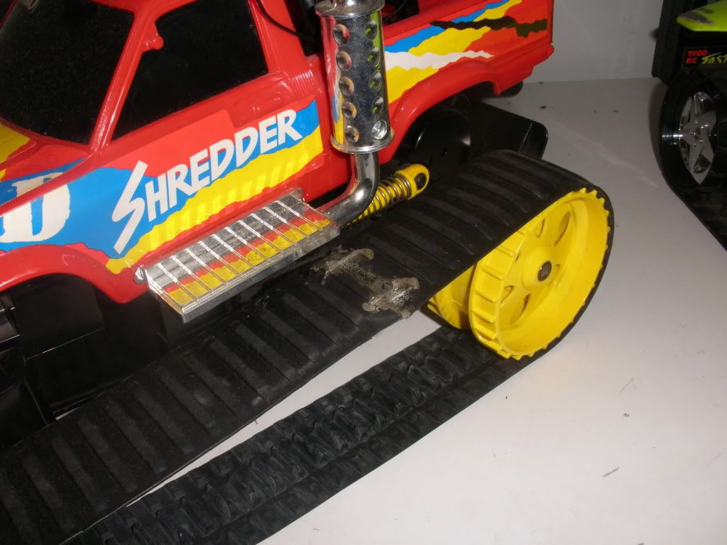 first is the road Shredder, which I do have the box and paper work for. it run but the treads are cracked and the one a repair with some staples and glue as you can see