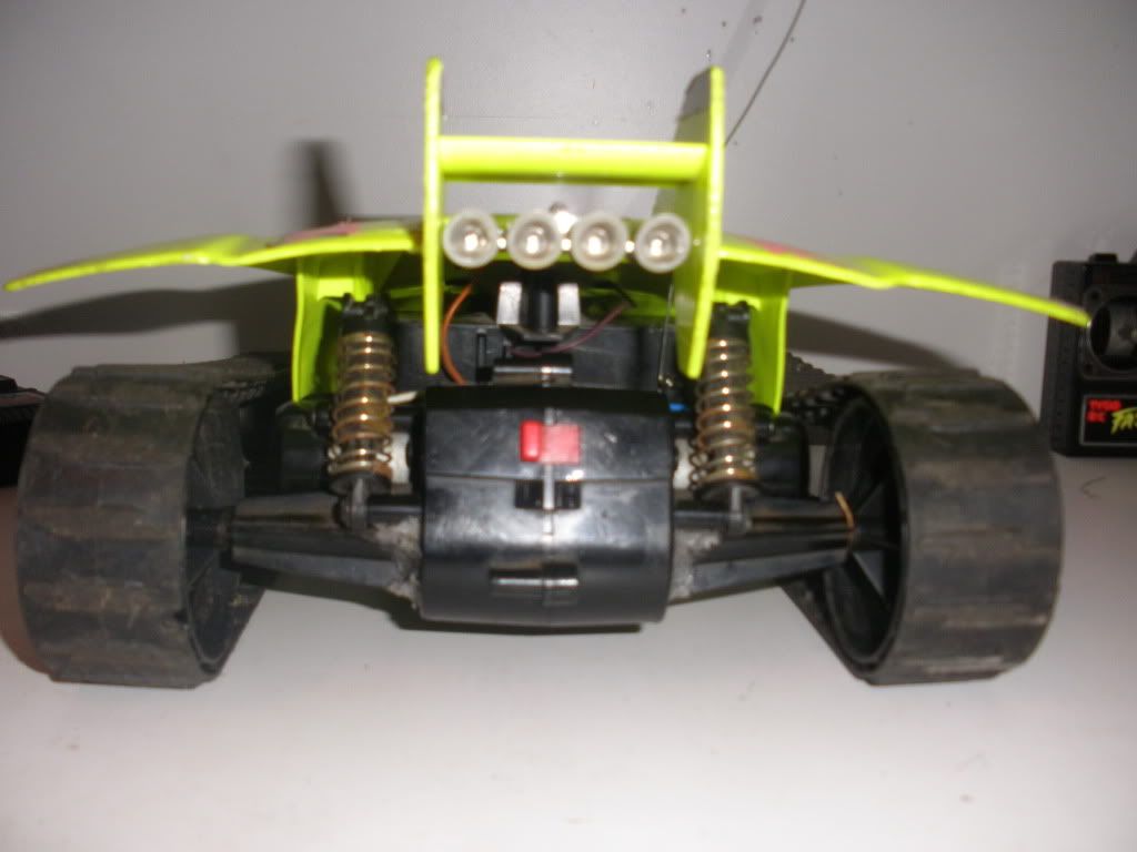 finally the red fast traxx, this doesn't have original remote, and i put different shocks on it but I can change them back to the original. can there is no battery door so i used velcro which work nicely, this runs well too.