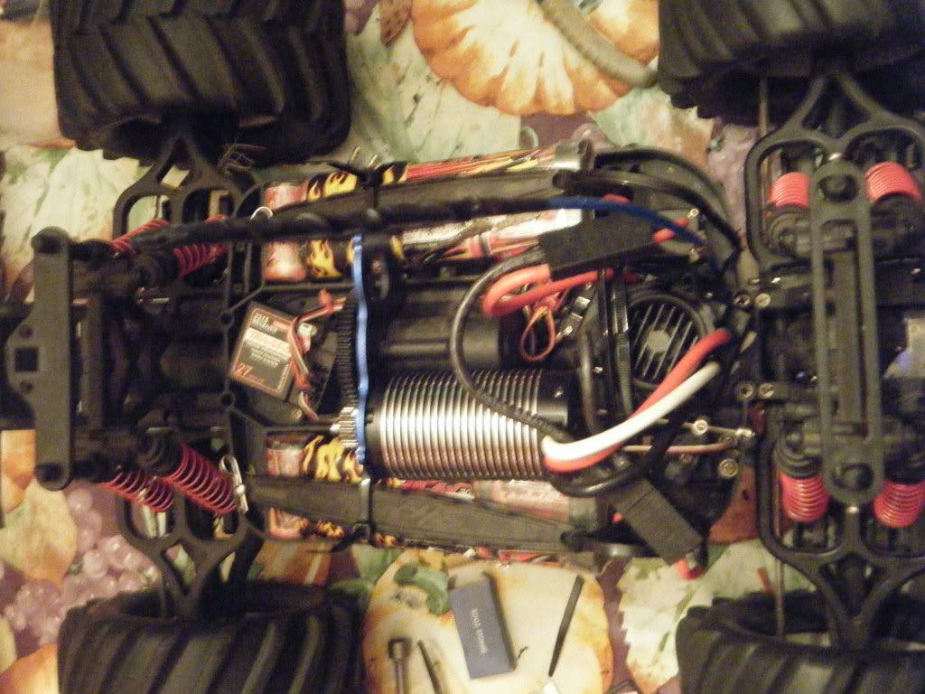 The best thing you can do for that emaxx now is put a spool in the front. I brushlessed mine and ran an 11.1 lipo and the only problem it had was one tire in the front would always try to balloon up at high speed cause all it takes is a little traction loss from one and the whole truck goes out of control. I put a spool in mine and it kept the front wheels spinning even. You will literally gain 30mph+ from a spool, otherwise 40mph is about all you will see out of it. A good weight in the front will also help top speed because it wheelies like a bastard above 40mph.
