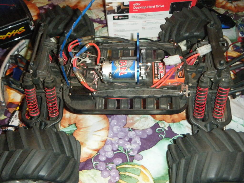 Got an E-Maxx (3906) for Christmas. Decided to get back into the RC world since I have a few friends who have them. Upgrades so far: Aluminum skid plate & heavy duty drive shafts. Hope to upgrade to steel driveshafts soon and eventually get a brushless motor. Have plans to build a track in my backyard also. :D