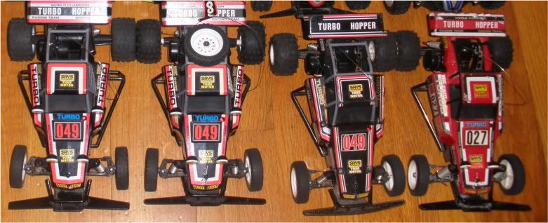 alright i have 4 hoppers here all run, i know one the one gear is starting to go bad, but i have another good rear to put on it when it does go. i only have 1 27mhz remote and 1 49mhz. need to check i think one remoter reverse doesnt work. if you want one of these or so make me an offer