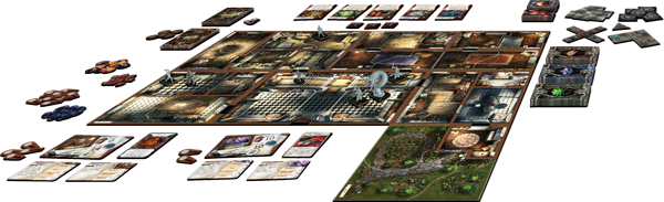 Now, Fantasy Flight Games is releasing a new stand-alone, mansion crawling game under the Arkham Horror banner which looks more like it has a similar playstyle to Descent.  There are plenty of plastic bits and one player takes on the role of bad guy, while the rest of the players are 'investigators' trying to solve the mystery and defeat evil.